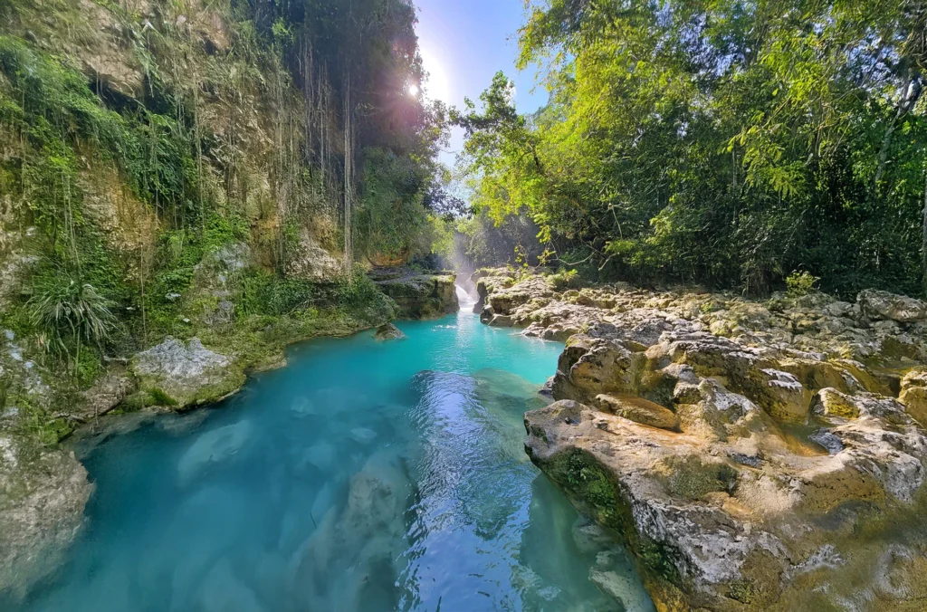 Your day begins with an early hotel pickup in Santo Domingo, followed by a scenic drive through the lush mountains of the Cibao region. Upon arrival, your expert guide leads you along the hidden river trail, a moderate hike through tropical forest paths. The reward at the end of the trail is breathtaking: the crystal-clear waters of Río Partido, famous for their turquoise tones and natural pools carved into smooth rock formations.